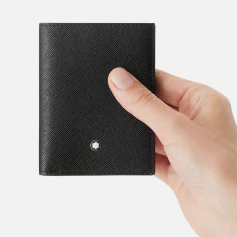 Accessorio della collezione MONTBLANC SARTORIAL realizzato in pelle pregiata stampa saffiano di colore nero - Il Portafogli mini presenta tre aperture per carte di credito, uno scomparto per le banconote e due tasche extra - A completare il modello, l’iconico simbolo della cima innevata emblema di Montblanc - Fodera interna in poliammide e cotone - Dimensioni: base 8 cm - altezza 10,5 cm - Garanzia: 24 Mesi.