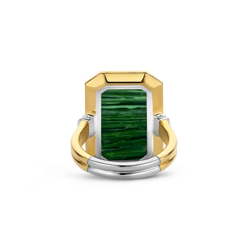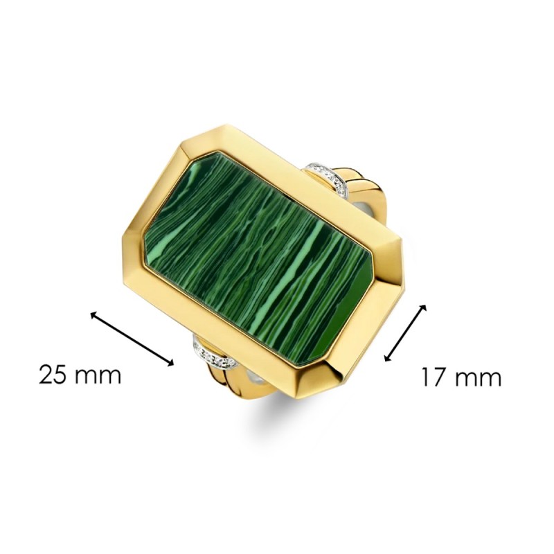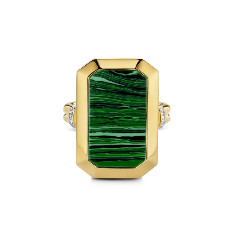 Gioiello da Donna TI SENTO MILANO realizzato in argento 925 placcatura in oro giallo - L’anello vanta al centro una deliziosa pietra rettangolare in malachite verde - Il gambo è decorato con dettagli in pavé di luminosi zirconi bianchi su entrambi i lati - Misura Anello: 16 – Dimensione Centrale: 1,7 x 2,5 cm - Garanzia Internazionale: 24 Mesi - Tutti i gioielli sono privi di nickel e ipoallergenici.