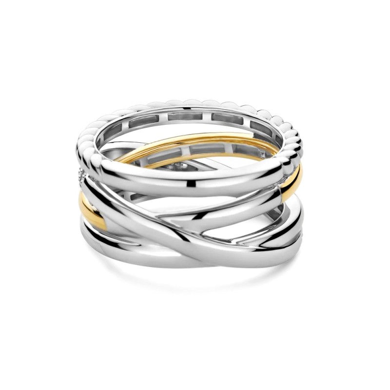 Gioiello da Donna TI SENTO MILANO realizzato in argento 925 placcatura in platino - L’anello, modello a fascia, è caratterizzato da quattro file di cui una con finitura intrecciata, una con finitura lucida e placcatura in platino, una con finitura lucida e placcatura in oro giallo ed una impreziosita con luminosi zirconi bianchi - Misura Anello: 16 - Larghezza Fascia: 15 mm - Garanzia Internazionale: 24 Mesi.