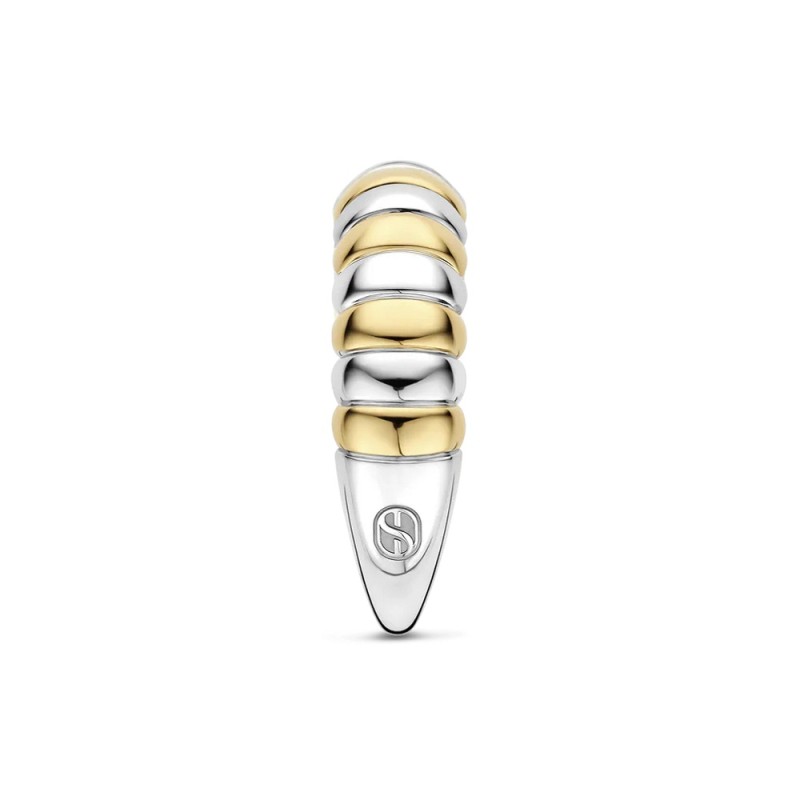 Gioiello da Donna TI SENTO MILANO realizzato in argento 925 placcatura in platino - L’anello, valorizzato da sezioni alternate in argento con placcatura in oro giallo ed argento con placcatura in platino, è impreziosito al centro da luminosi zirconi bianchi - Misura Anello: 16 - Larghezza Fascia Superiore: 6 mm - Garanzia Internazionale: 24 Mesi.