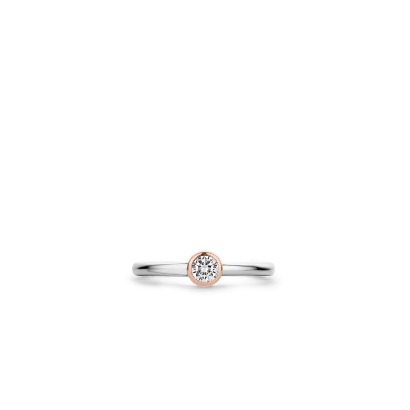 Anello Ti Sento Milano. Anello solitario donna in argento 925/°°° rodiato, finiture in