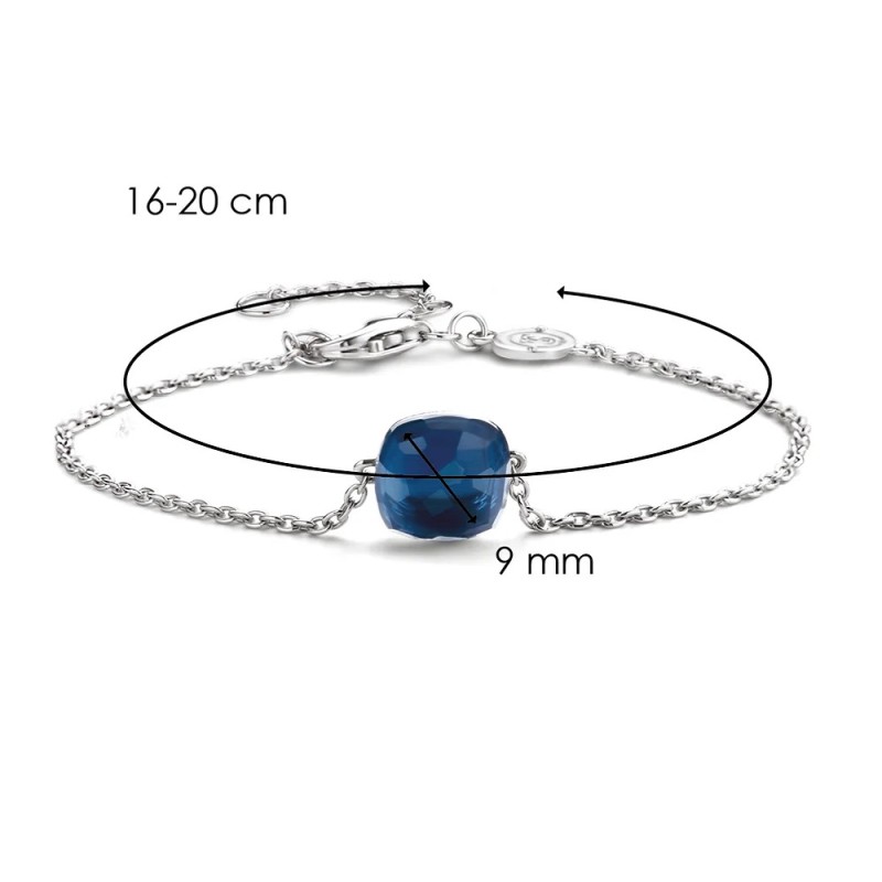 Gioiello da Donna TI SENTO MILANO realizzato in argento 925 placcatura in platino per una brillantezza duratura - Il bracciale, caratterizzato da una fine maglia a catena, è impreziosito al centro da un delizioso cristallo blu scuro taglio cuscino di 9 mm - Chiusura con moschettone in argento 925 - Lunghezza regolabile a 16, 18 e 20 cm grazie alla presenza di due ulteriori anellini all’estremità del bracciale - Garanzia Internazionale: 24 Mesi - Tutti i gioielli sono privi di nickel e ipoallergenici.