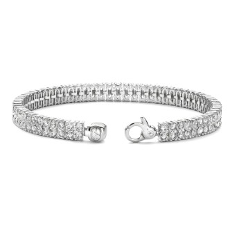 Gioiello da Donna TI SENTO MILANO realizzato in argento 925 placcatura in platino - Il bracciale, modello Tennis, è impreziosito da una doppia fila di luminosi zirconi bianchi dal diametro di 2,5 mm - Chiusura con moschettone - Lunghezza Bracciale: 16,5 cm - Garanzia Internazionale: 24 Mesi.