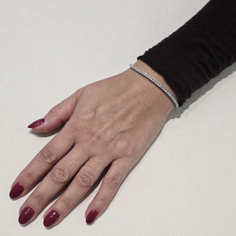 Gioiello da Donna GIORGIO VISCONTI della collezione ANTOLOGIE realizzato in oro bianco 750 (18KT) - Il bracciale, modello Tennis, è impreziosito da una fila di luminosi diamanti taglio brillante per una caratura complessiva di 1,08 ct - Lunghezza Bracciale: 18 cm - Chiusura a cassetta con doppio blocco di sicurezza laterale - Peso: 9,80 grammi - Diamanti F/G color - Garanzia Internazionale: 24 Mesi.