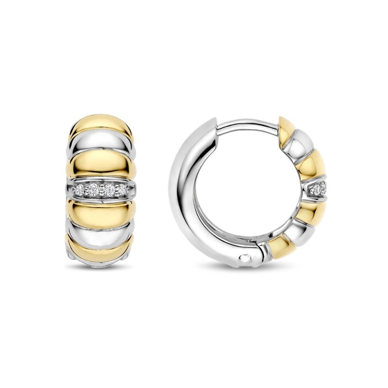 Gioiello da Donna TI SENTO MILANO realizzato in argento 925 placcatura in platino - Gli orecchini, modello a cerchietto, valorizzato da sezioni alternate in argento con placcatura in oro giallo ed argento con placcatura in platino, è impreziosito al centro da luminosi zirconi bianchi - Diametro esterno dell'orecchino: 1,40 cm - Diametro interno dell'orecchino: 0,90 cm - Larghezza Orecchini: 6 mm - Chiusura con perno a scatto - Garanzia Internazionale: 24 Mesi.