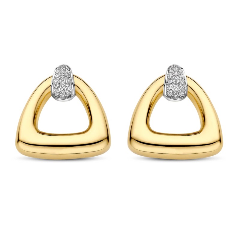 Gioiello da Donna TI SENTO MILANO realizzato in argento 925 - Gli orecchini, impreziositi da un pendente con una silhouette triangolare in argento con placcatura in oro giallo, sono valorizzati al lobo da un anelletto, in argento con placcatura in platino, ulteriormente impreziosito da uno scintillante pavé di zirconi bianchi - Chiusura con perno e farfallina - Lunghezza Orecchini: 2,0 cm - Garanzia Internazionale: 24 Mesi.