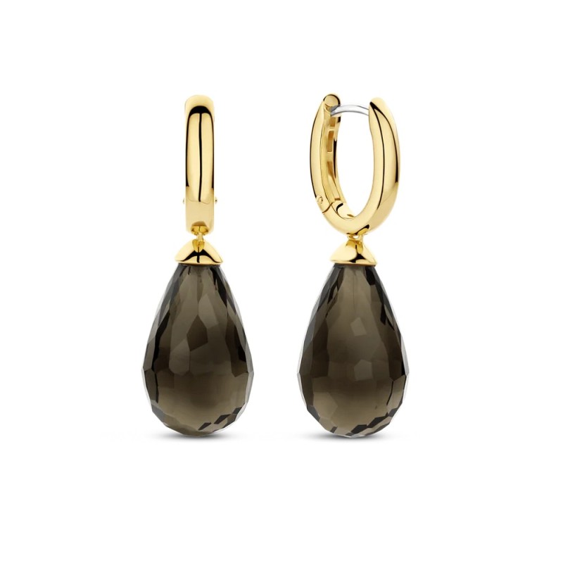 Gioiello da Donna TI SENTO MILANO realizzato in argento 925 placcatura in oro giallo - Gli orecchini, caratterizzati da un piccolo cerchietto, sono valorizzati da un cristallo sfaccettato traslucido taglio briolette color kaki fumé pendente - Chiusura con perno e farfallina - Lunghezza Orecchini: 3,7 cm - Garanzia Internazionale: 24 Mesi.
