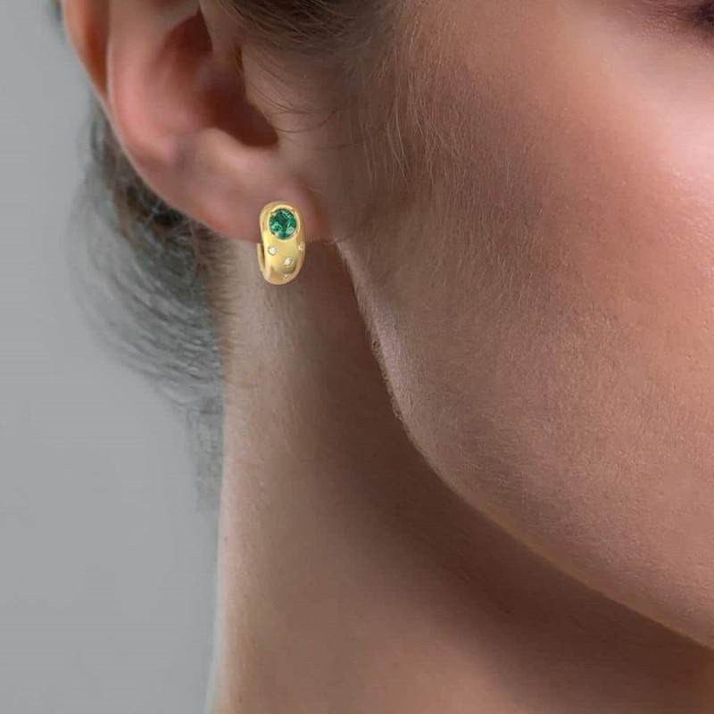 Gioiello da Donna della collezione ARTLINEA STARRY NIGHT realizzato in oro giallo 750 (18KT) - Gli orecchini, modello a cerchietto, sono valorizzati da due smeraldi naturali per una caratura complessiva di 0,46 ct impreziositi con luminosi diamanti taglio brillante per una caratura complessiva di 0,12 ct - Peso 3.90 grammi - Chiusura con perno a scatto - Spessore Cerchietto: da 3 a 9 mm - Garanzia Internazionale: 24 Mesi.
