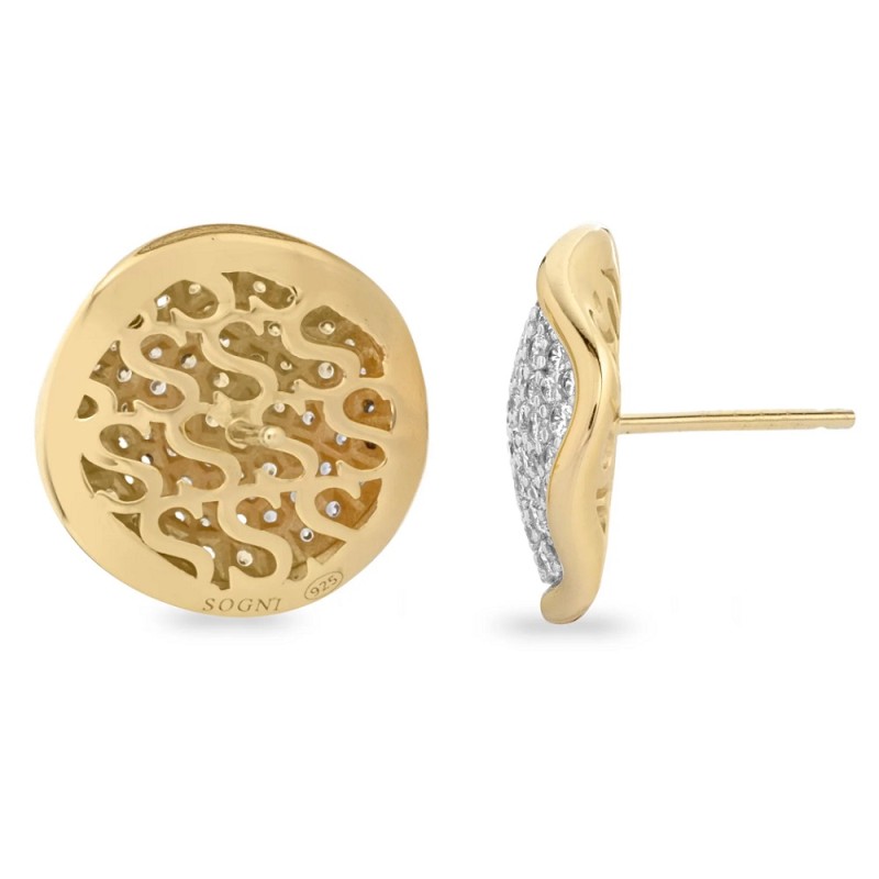 Gioiello da Donna della collezione SOGNI RIFLESSI realizzato in argento 925 placcatura oro giallo - Gli orecchini, a forma di disco piccolo, sono impreziositi da un luminoso micro-pavé di zirconi bianchi - Chiusura con perno e farfallina - Diametro Disco: 18 mm - Garanzia Internazionale: 24 Mesi - Tutti i gioielli sono privi di nickel e ipoallergenici.