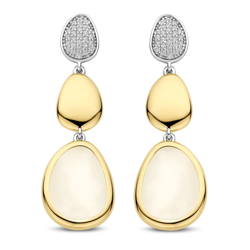Gioiello da Donna TI SENTO MILANO realizzato in argento 925 - Gli orecchini pendenti sono caratterizzati da una serie di tre elementi a forma di ciottolo di cui: uno al lobo con placcatura in platino impreziosito da un pavé di scintillanti zirconi bianchi, uno con placcatura lucida in oro giallo ed uno valorizzato con un delizioso cristallo bianco latte incastonato in una montatura placcata in oro giallo - Chiusura con perno e farfallina - Lunghezza Orecchini: 4,4 cm - Garanzia Internazionale: 24 Mesi - Tutti i gioielli sono privi di nickel e ipoallergenici.