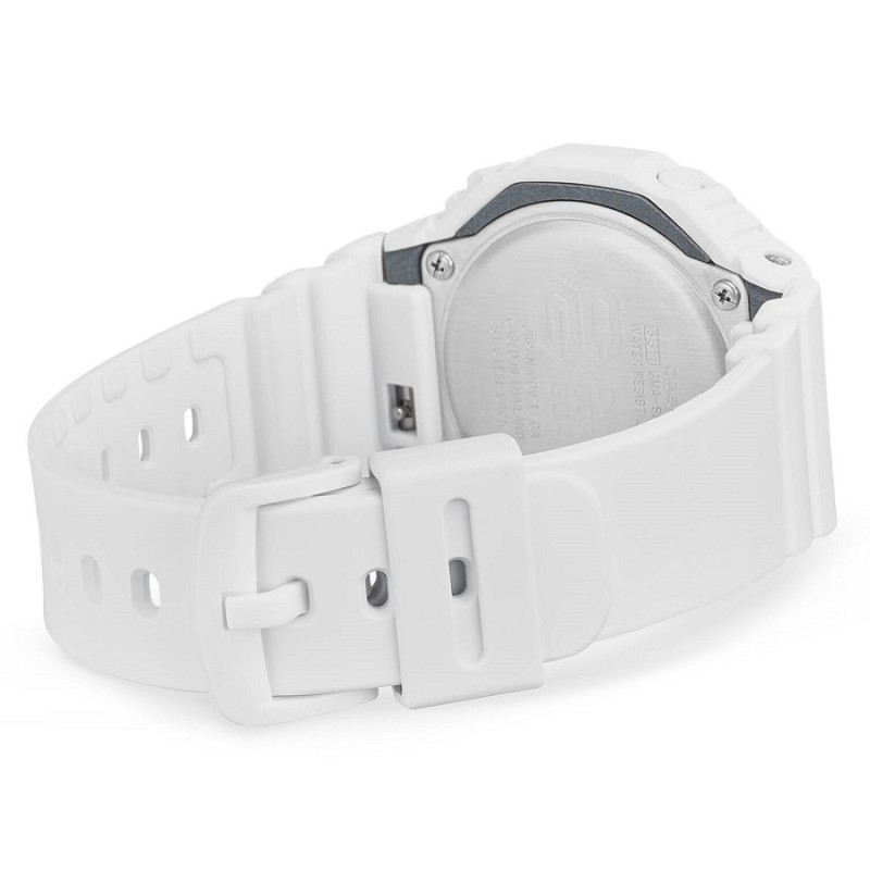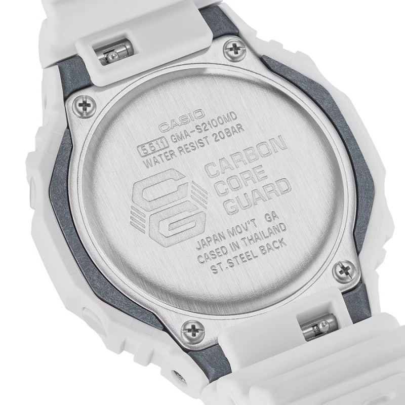 Referenza: GMA-S2100MD-7AER. Collezione: G-Shock. Movimento: Al Quarzo. Confezione: Astuccio Originale. Garanzia Prodotto: 24 mesi. Genere: Uomo. Categoria: Orologi. Sottocategoria: Multifunzione. Forma Cassa: Rotonda. Materiale Cassa: Resina e Rinforzo in Carbonio. Dimensione Cassa: 42.9 mm. Spessore Cassa: 11.20 mm. Colore Cassa: Bianca. Display: Analogico e Digitale. Colore Quadrante: Oro Rosé. Datario: Sì. Indici: A Bastoni. Vetro: Minerale. Materiale Cinturino: Resina. Colore Cinturino: Bianco. Chiusura: Fibbia ad Ardiglione. Resistenza all'acqua: 200mt - 20ATM. Fondello: Serrato con 4 Viti. Peso: 41,00 Gr.