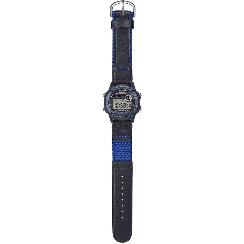 Orologio multifunzione da Ragazzo CASIO della collezione VINTAGE con movimento al quarzo, cassa 36.6 mm in resina nera e blu, spessore della cassa 10.90 mm, quadrante digitale nero, durata della batteria tre anni, calendario automatico, sveglia, segnale orario, cronometro a centesimi di secondo, timer per il conto alla rovescia, orario in formato 12 o 24 ore, luce LED di colore ambra, segnale acustico per il segnale orario e vetro sferico in acrilico - Il cinturino è in resina e tessuto di colore nero e blu e monta una chiusura con fibbia ad ardiglione in acciaio - Lunghezza Cinturino: Regolabile da 16 a 20 cm - Orologio impermeabile a 5 ATM, quindi può tollerare piccole immersioni, ma non la pressione dell'acqua (come nella doccia o durante un tuffo) - Garanzia Internazionale: 24 Mesi.