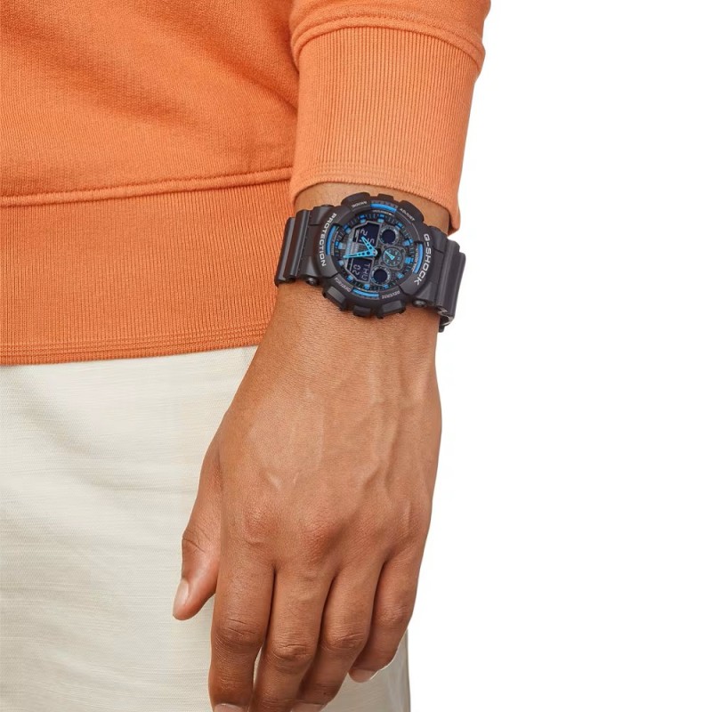 Referenza: GA-100-1A1ER. Collezione: G-Shock. Movimento: Analogico e Digitale al Quarzo. Confezione: Astuccio Originale. Garanzia Prodotto: 24 mesi. Genere: Uomo. Categoria: Orologi. Sottocategoria: Multifunzione. Materiale Cassa: Resina. Dimensione Cassa: 51.2 mm. Spessore Cassa: 16.9 mm. Colore Cassa: Nera. Quadrante: Nero. Vetro: Minerale. Materiale Cinturino: Resina. Colore Cinturino: Nero. Chiusura: Fibbia ad Ardiglione. Resistenza all'acqua: 200mt - 20ATM. Peso: 70 gr.