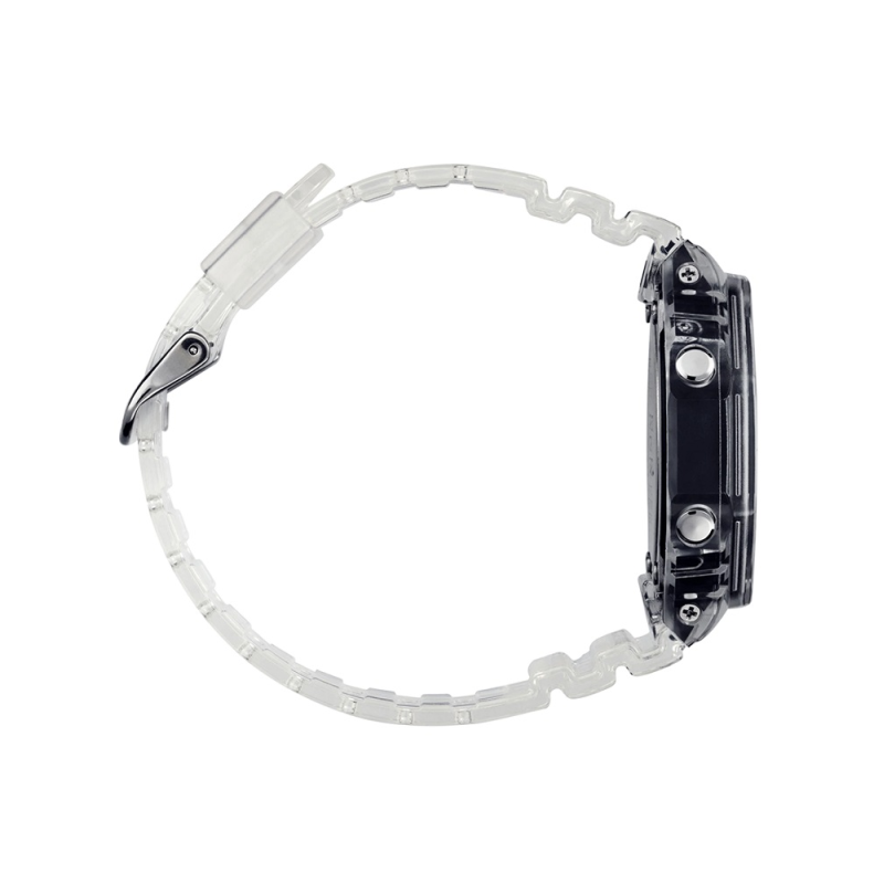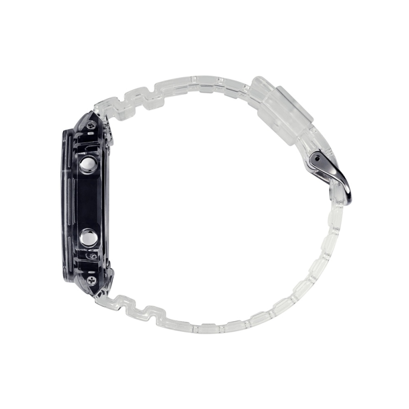 Cinturino in resina trasparente e chiusura con fibbia.
