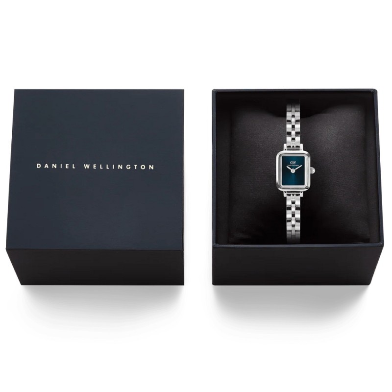 Orologio solo tempo da Donna della collezione DANIEL WELLINGTON QUADRO MINI ARCH 3-LINK ARCTIC SUNRAY SILVER con movimento al quarzo, cassa rettangolare 15.4 x 18.2 mm in acciaio inox, spessore della cassa 6.00 mm, quadrante analogico blu, vetro minerale e fondello serrato a pressione - Il cinturino è in acciaio inox finitura lucida e monta una chiusura deployante - Lunghezza Regolabile: da 12.5 a 18 cm - Larghezza Cinturino: 6 mm - Orologio impermeabile a 3 ATM, quindi significa che non si può immergere in acqua, ma che resiste agli spruzzi e agli schizzi - Garanzia Internazionale: 24 Mesi.