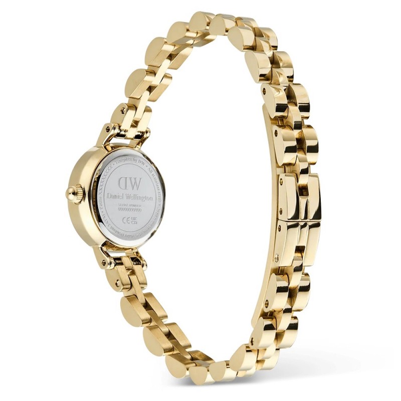 Orologio solo tempo da Donna della collezione DANIEL WELLINGTON PETITE MINI ARCH 3-LINK WHITE GOLD con movimento al quarzo, cassa 19 mm in acciaio inox PVD gold, spessore della cassa 6.00 mm, quadrante analogico bianco, vetro minerale e fondello serrato a pressione - Il cinturino è in acciaio inox PVD gold finitura lucida e monta una chiusura deployante - Lunghezza Regolabile: da 13 a 18.5 cm - Larghezza Cinturino: 6 mm - Orologio impermeabile a 3 ATM, quindi significa che non si può immergere in acqua, ma che resiste agli spruzzi e agli schizzi - Garanzia Internazionale: 24 Mesi.