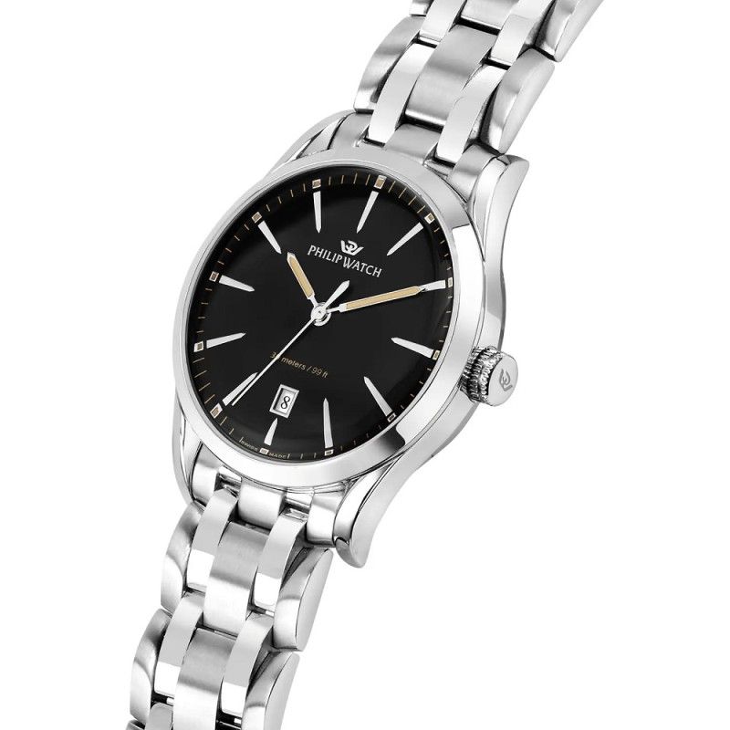 Orologio solo tempo da Uomo della collezione Sunray del brand PHILIP WATCH con movimento Swiss Made al quarzo, cassa 39 mm in acciaio inox, quadrante analogico nero, datario con finestrella ad ore 6 e vetro minerale curvo K1.