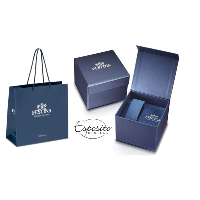 Siamo un rivenditore ufficiale del marchio FESTINA e vi garantiamo la loro qualità ed autenticità, inoltre ogni orologio che vendiamo è nuovo, mai indossato e viene spedito con astuccio e shopper originale, scontrino e garanzia ufficiale valida per 24 mesi.