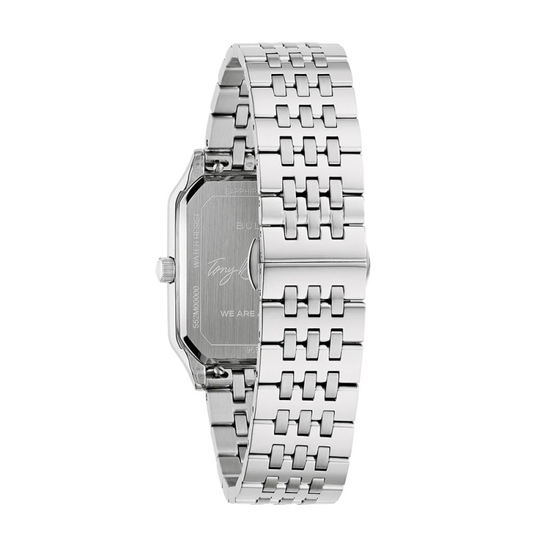 Orologio BULOVA solo tempo da Uomo della collezione CLASSIC TONY BENNETT SPECIAL COLLECTION con movimento al quarzo, cassa rettangolare 32 mm in acciaio inox, spessore della cassa 7.00 mm, quadrante analogico champagne con indici e lancette di colore silver, datario con finestrella ad ore 3, fondello firmato Tony Bennett e con incisa la scritta “ WE ARE ALL HERE” e vetro zaffiro con trattamento antiriflesso - Il cinturino è in acciaio inox con finitura satinata e lucida e monta una chiusura deployante con apertura a doppio pulsante - Orologio impermeabile a 3 ATM, quindi significa che non si può immergere in acqua, ma che resiste agli spruzzi e agli schizzi.