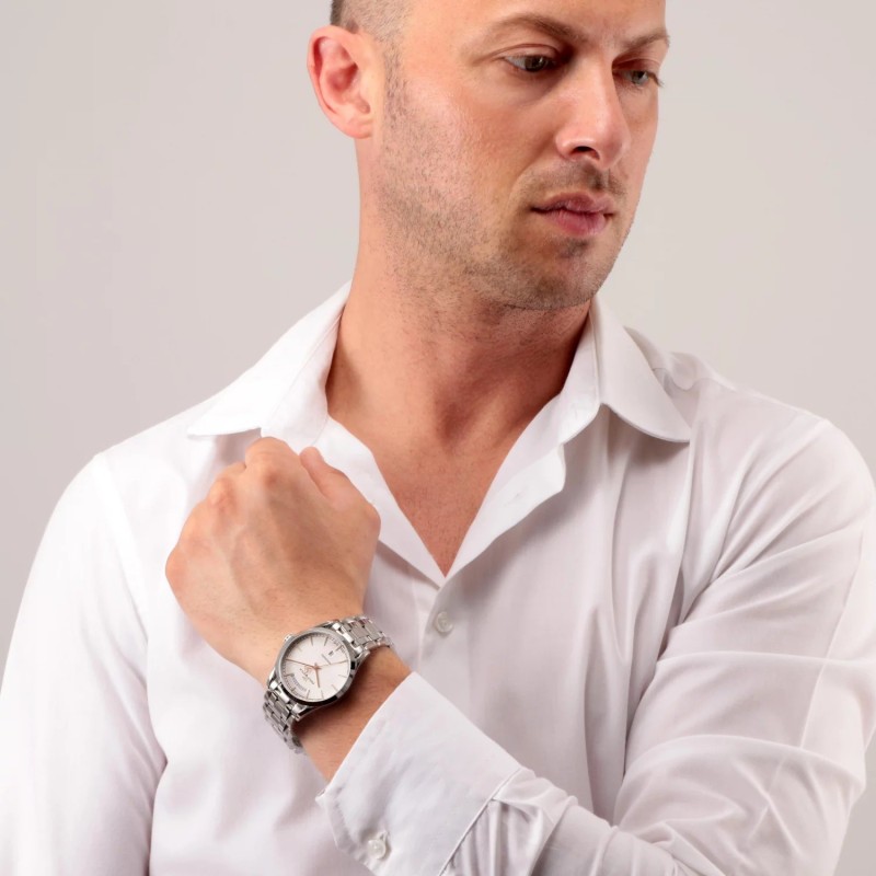 Il modello è caratterizzato da una cassa in raffinato acciaio inox di 39,2 mm.