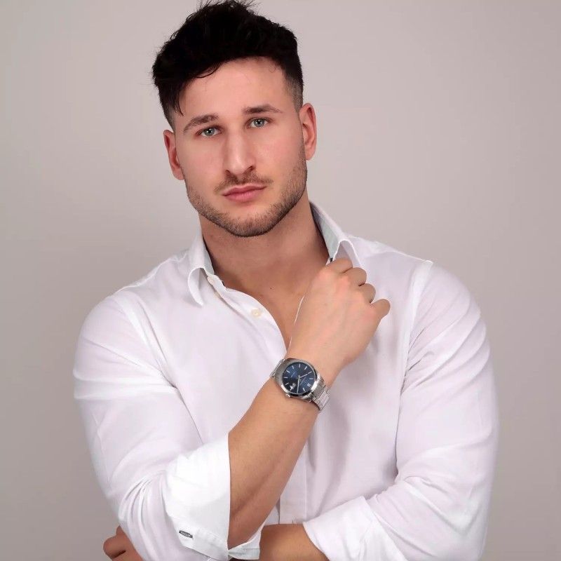 Il modello è caratterizzato da una cassa in raffinato acciaio inox di 41 mm finiture lucide e satinate. Il quadrante è di colore blu e porta una finestrella ad ore 3 con lente d’ingrandimento per il datario.