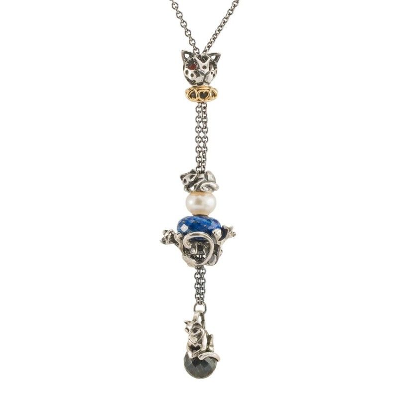 Pendente: “Tigre Tranquilla”. Materiale: Argento 925. Designer: Louise Rimpler. Pietre: Occhio di Tigre Blu.