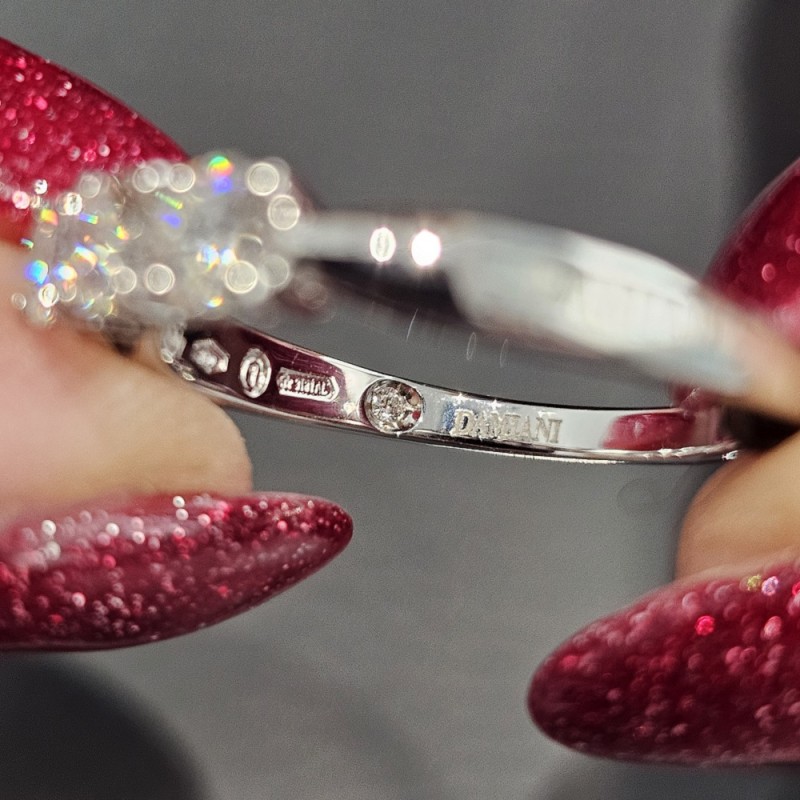 Referenza: 20072945. Confezione: Astuccio Originale. Garanzia Prodotto: 24 mesi. Genere: Donna. Categoria: Anelli. Materiale: Oro Bianco 750 (18KT). Pietre: Diamanti Bianchi Naturali.